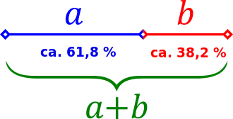 Das magische Streckenverhältnis, welches wir heute als „goldenen Schnitt“ bezeichnen läßt sich mathematisch durch folgende Formel ausdrücken: